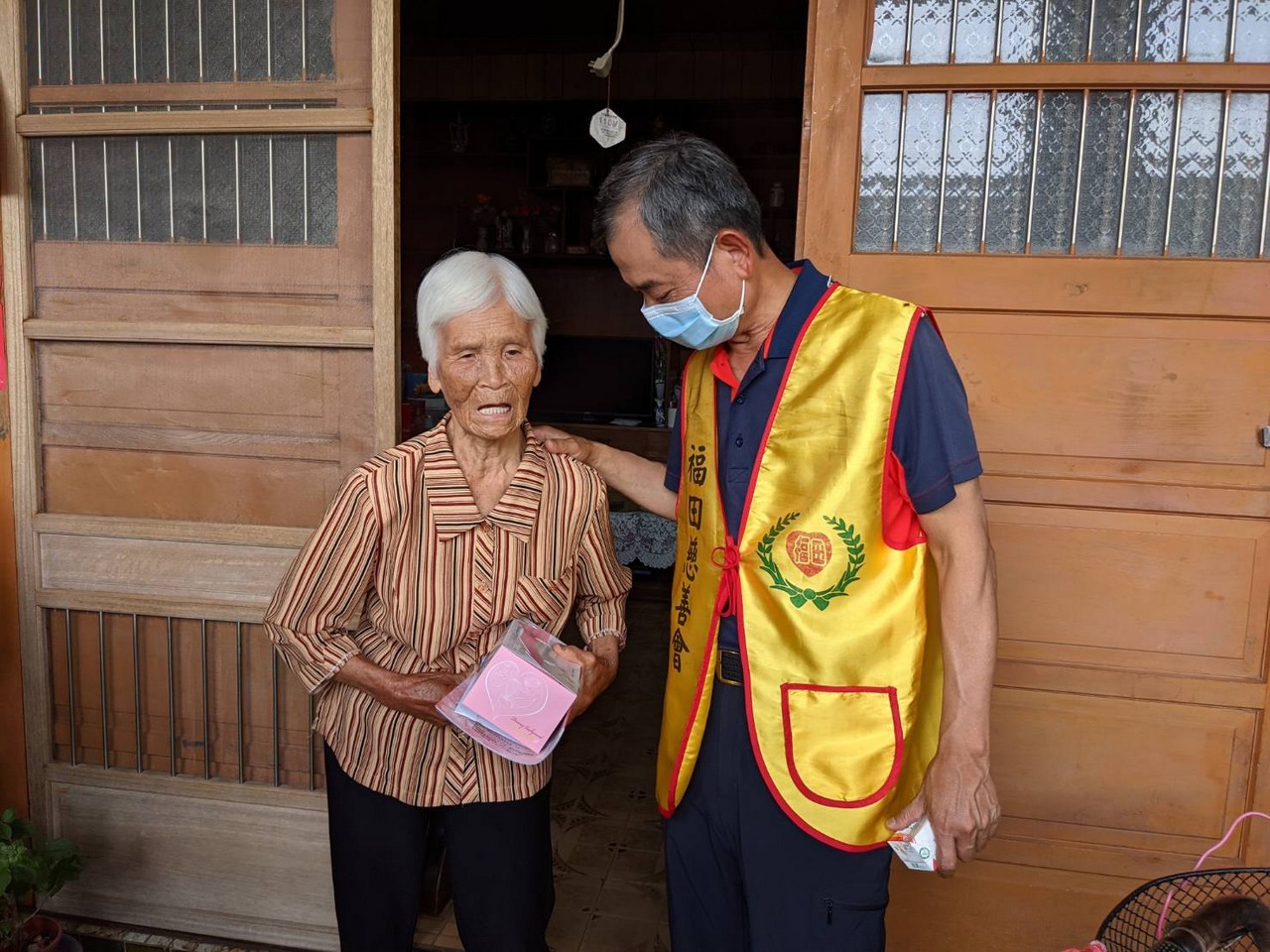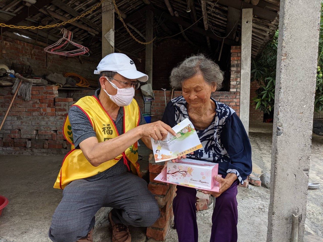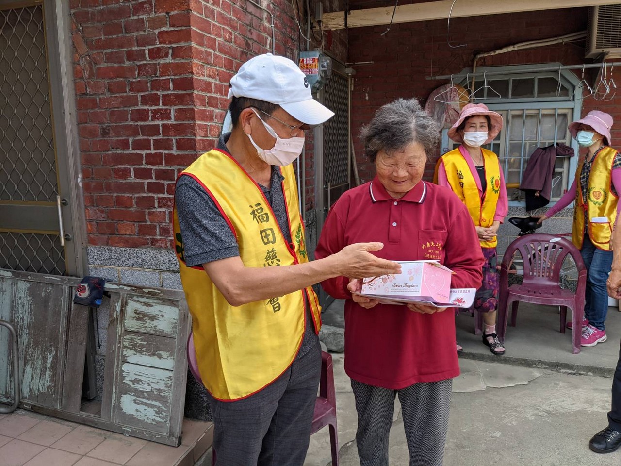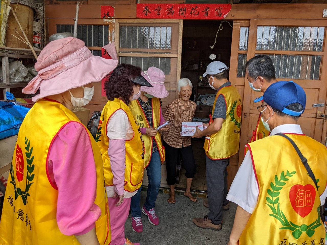 多年來福田持續耕耘,關懷在地獨居長輩,居住惠來里的顏媽媽獨自生活多年,在狹小的房子裡沒人陪伴心卻空蕩蕩,蜿蜒的巷弄,走著一群穿著黃背心的福田志工顯得格外顯眼,遠遠的就能感受到長者心中喜悅之情,熟悉又溫暖為傳遞愛而來。當送達祝福給予一個大大的擁抱後離行前,儼然可見其不捨與感動之情….,「我們明年還會再來,請媽媽要保重喔!」,這不只是志工們與媽媽的約定,更是福田實現本會宗旨不變的堅持。
