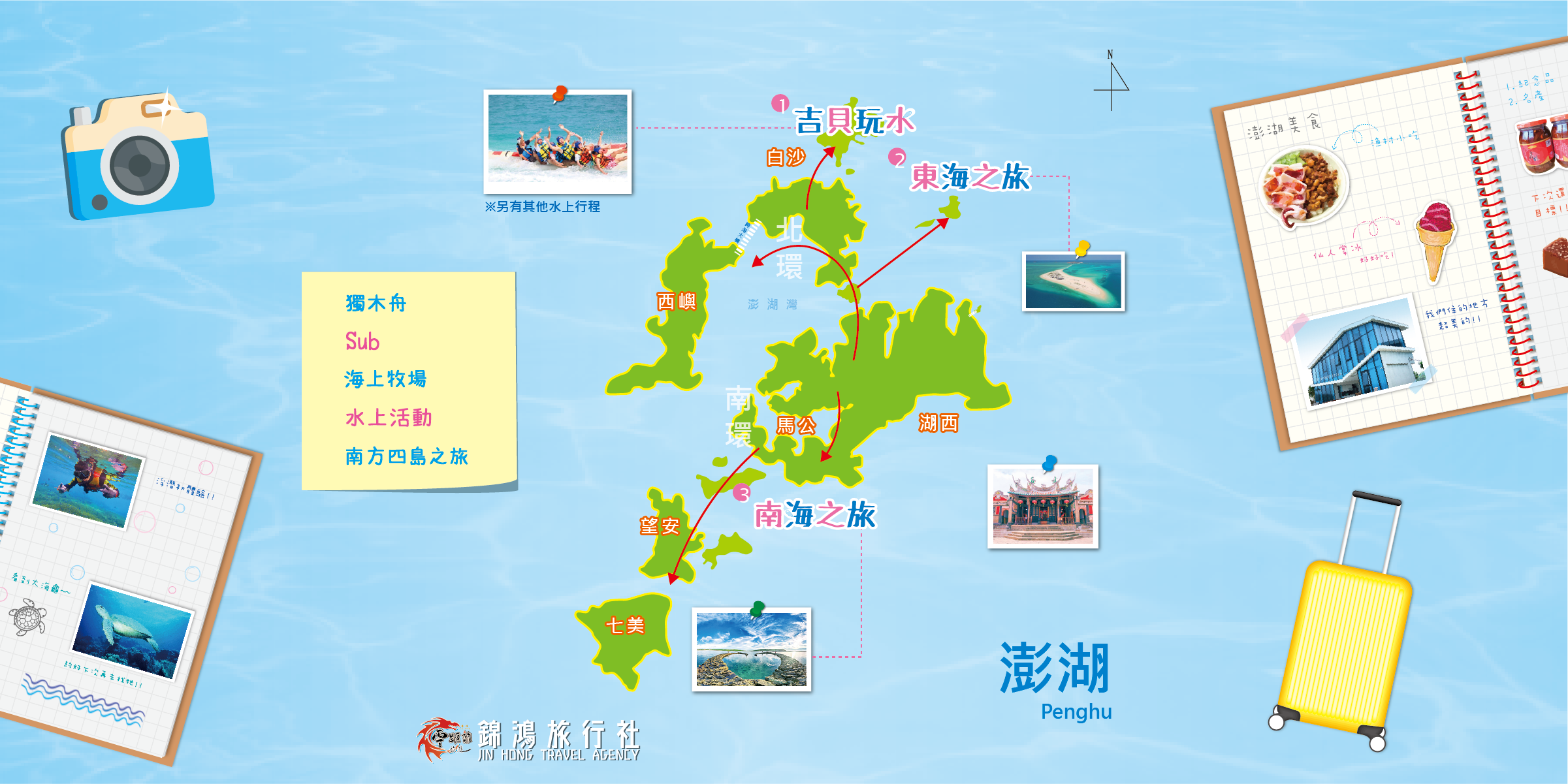 澎湖群島,亦稱澎湖列島,是位於臺灣海峽上的一組群島,東距臺灣本島約50公里,西離中國大陸約140公里,由97個大小島嶼組成,總面積約為128平方公里,全境均隸屬中華民國臺灣省澎湖縣管轄,為中華民國實際管轄區域第一大離島群。16世紀時葡萄牙殖民者來到東方,發現澎湖海域魚產豐富,在島上住著許多漁民,因此稱呼澎湖為漁翁島(Pescadores)。澎湖群島多漁港,夜間萬點漁火流動,忽明忽滅,與水中映射之星斗互相煇映,1953年臺灣省政府將「澎湖漁火」選定作為臺灣八景之一。[1]觀光遊憩是現今澎湖群島的重要產業之一,中華民國交通部觀光局也在1995年於澎湖群島設立「澎湖國家風景區」。
